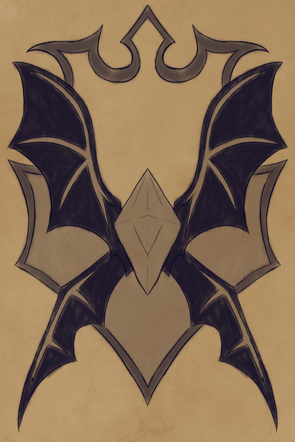 Legend has it there was two seals, each representing the respective sides. Though there has only ever seen to be one.This seal, is sharp, much like the minds of the vampires. The wings can be removed, turning into styled blades. And much like the original, even its copies use crystals filled with the blood of the first vampires.Inside the seal, it holds an enchanted glass that was one done to reveal vampires, either born or bitten. Rumors have it that it also acts as some sort of 'seeing' glass.