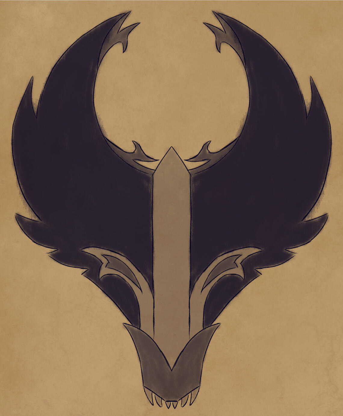 It's seal looks as if there is another part to it, creating a full image of a wolf. The curved top seems to frame a view of the moon when full.Parts of it is carved from the stone of Winter Hallow Ledge and the other parts were carved from some of the bones of the first werefolk. Fangs of the first werefolk have been added to it. Golden details line the smaller pieces.Many wonder where it's weapon lies, and some believe that it can split into two pieces to be attached to a staff to become a bladed polearm.