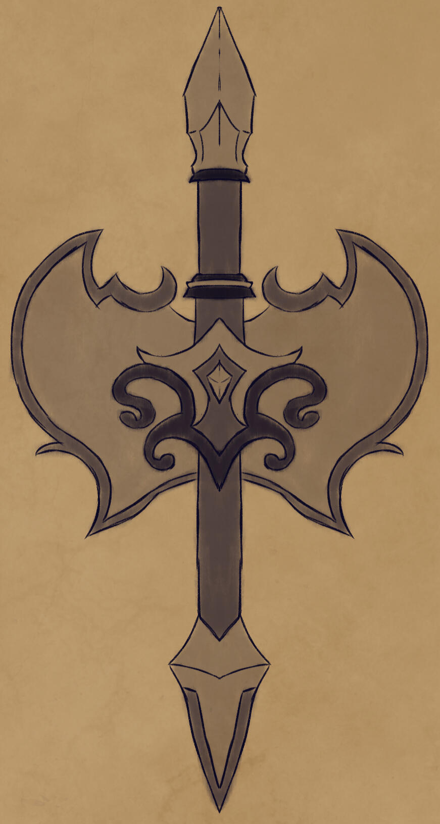 Destil's seal was forged by the first of the dwarves. It was used as a sign of peace between the dwarves and the other beings that lived within the territory.It can split apart to turn to either a polearm or an axe as it's wooden poles can extend. It was agreed that it was safest with the dwarves in oldest caves of the mountains. There are no copies of it and the royal family are the only ones with the original.